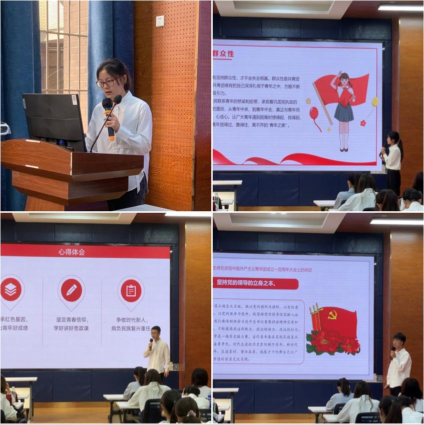 为深入学习贯彻习近平总书记考察中国人民大学时的重要讲话和总书记对高等教育工作的系列重要指示精神,坚持为党育人、为国育才,不断提高党支部成员思想水平、政治觉悟、道德品质、文化素养,深入学习领会习近平总书记在庆祝中国共产主义青年团成立100周年大会上的重要讲话和总书记对当代青年寄予的殷切期望,从共青团百年历史中汲取智慧和力量,在牢记初心使命中谱写新时代青春乐章,402永利集团官网入口本科经贸类党支部于2022年5月19日在J0218举办了学习贯彻习近平总书记重要讲话精神主题党日活动。活动由党支部书记陈建奇主持,全体党员、本期发展对象参加了本次活动,活动分为两个部分:1、陈建奇同志领学习近平总书记重要讲话内容;2、党支部成员分享学习习近平总书记重要讲话精神心得。