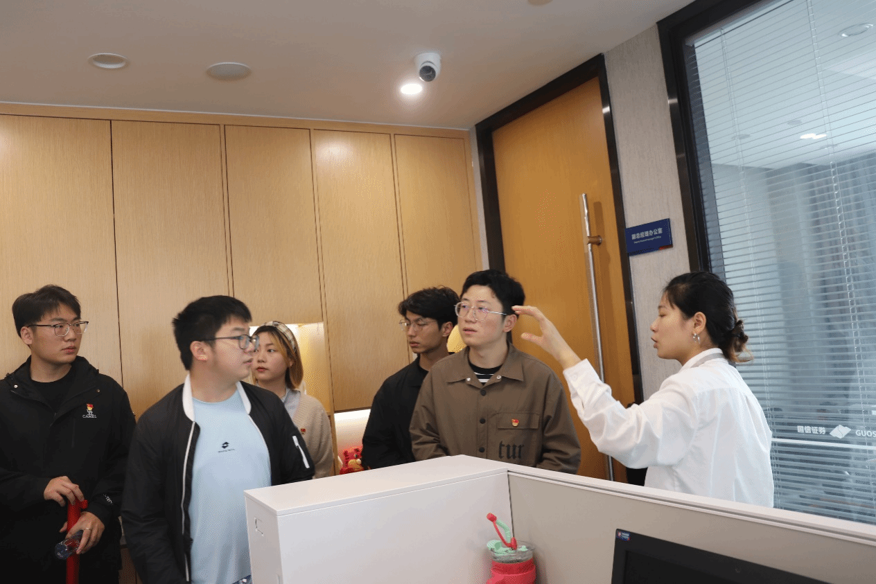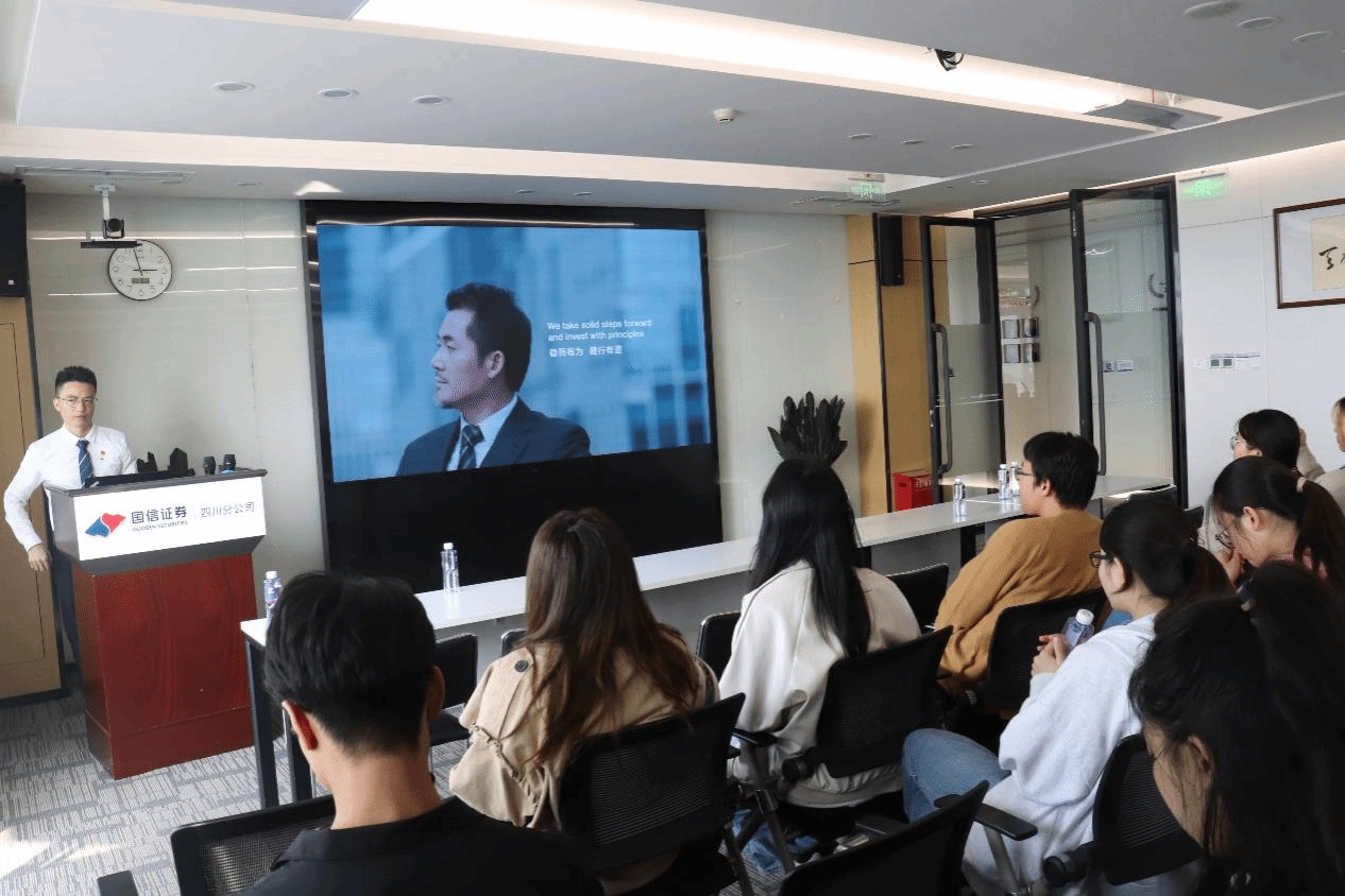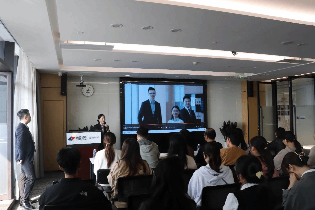 抵达后,国信证券的领导和工作人员热情接待,并对永利集团官网师生的到来表示热烈欢迎。随后,大家在工作人员的带领下进入会议室落座,国信证券理财三部的周圆皓经理简要介绍了此次活动的流程,本次党建共建活动正式开始。