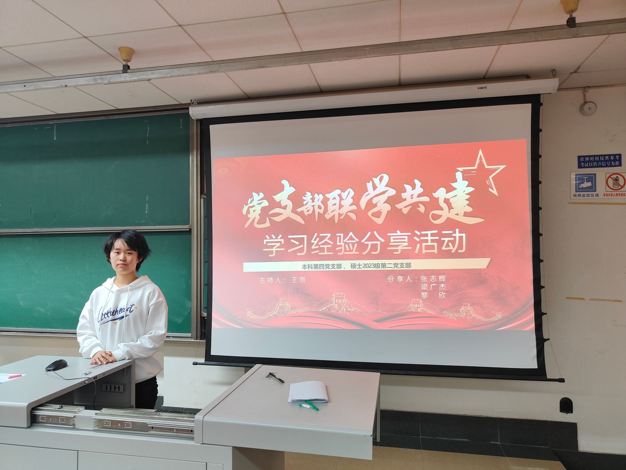 为深入贯彻落实党的教育方针,以高质量党建引领学生成长、推进学风建设,助力支部成员更好地规划升学、就业道路,实现人生价值, 11月27日19时,402永利集团官网入口本科第四党支部联合硕士2023级第二党支部在九里校区逸夫馆J4209共同举办了党支部联学共建学习经验分享活动。402永利集团官网入口硕士2023级第二党支部书记贾佳、本科第四党支部书记张先凌,以及两支部党员、积极分子参与了此次活动。