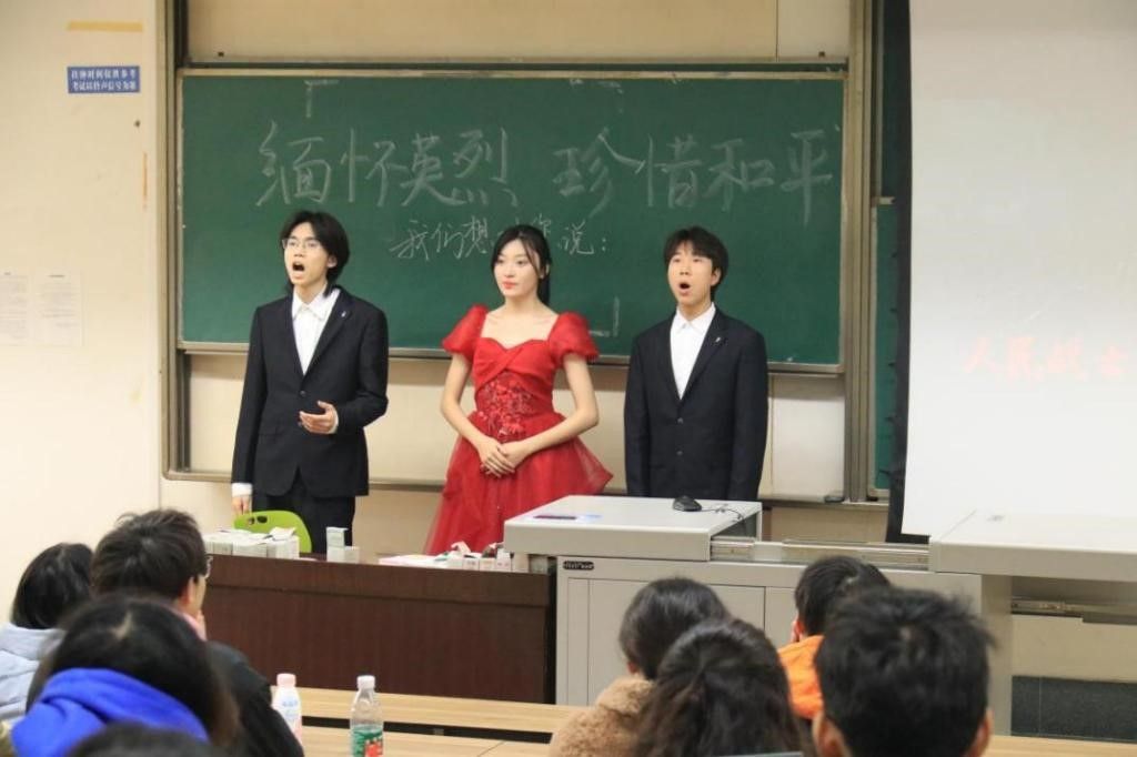 2023年12月13日是我国第十个南京大屠杀死难者国家公祭日。为缅怀先烈、传承红色基因,淬炼崇高信念、传承民族精神,进一步加深广大青年对国家公祭日的认识和理解,12月7日,402永利集团官网入口本科第四党支部在九里校区逸夫馆4218组织开展了“缅怀英雄先烈,传承精神火炬”主题党日活动,鼓励广大党员继承先烈遗志,不忘初心使命,厚植家国情怀。